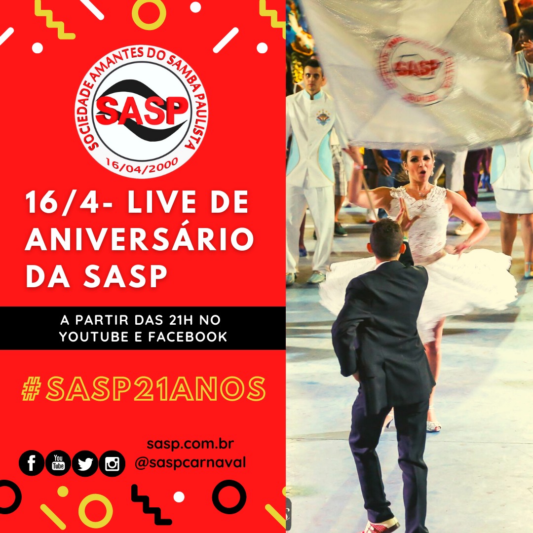 Leia maisNeste sexta-feira, dia 16/4/2021, a SASP - Sociedade Amantes do Samba Paulista - comemora os 21 anos de sua criação. E para celebrar este momento, o portal fará uma Live pelos canais do o Facebook e Youtube comemorativa com muitas novidades. Entre elas, a SASP anunciará sua nova programação e conteúdos,