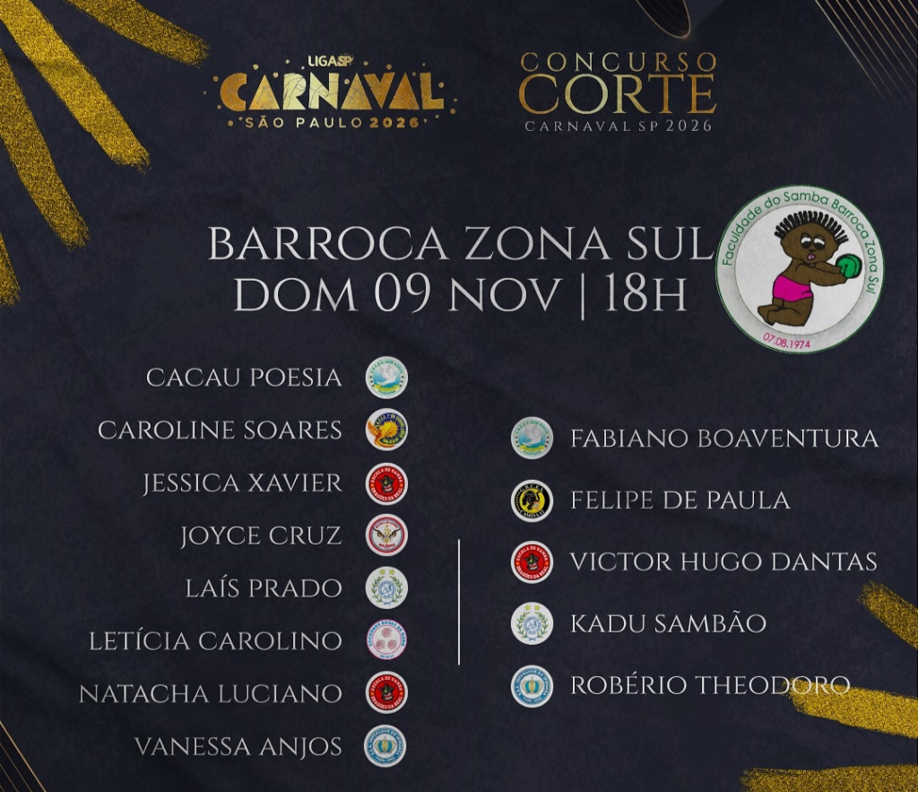 A Liga Independente das Escolas de Samba de São Paulo (Liga-SP) será a responsável pela realização do concurso que definirá a Corte do Carnaval Paulistano 2026, formada pelo Rei Momo, Rainha, Primeira e Segunda Princesas, além da Cidadã e do Cidadão Samba. A organização do evento, que em anos anteriores estava sob responsabilidade da SPTuris, passa agora à entidade que comanda os desfiles no Sambódromo do Anhembi.