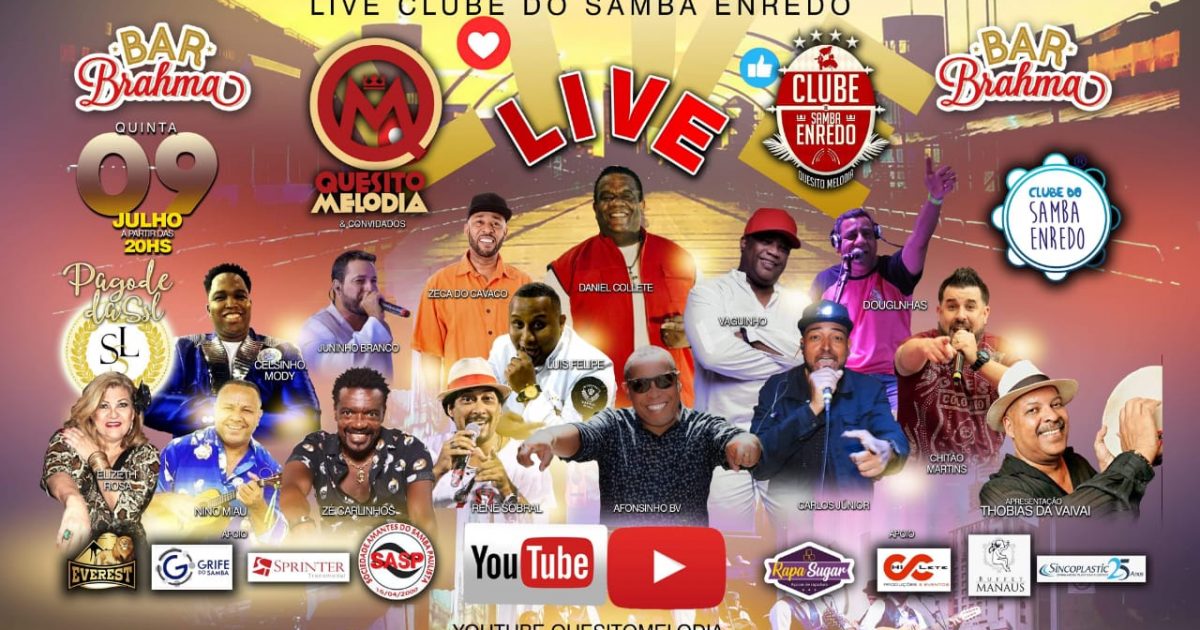 Os amantes do samba-enredo não podem perder a live do grupo Quesito Melodia, que será realizada nesta quinta-feira (9), a partir das 20h, no Bar Brahma e repleta de convidados especiais para uma roda de sambas de carnaval.