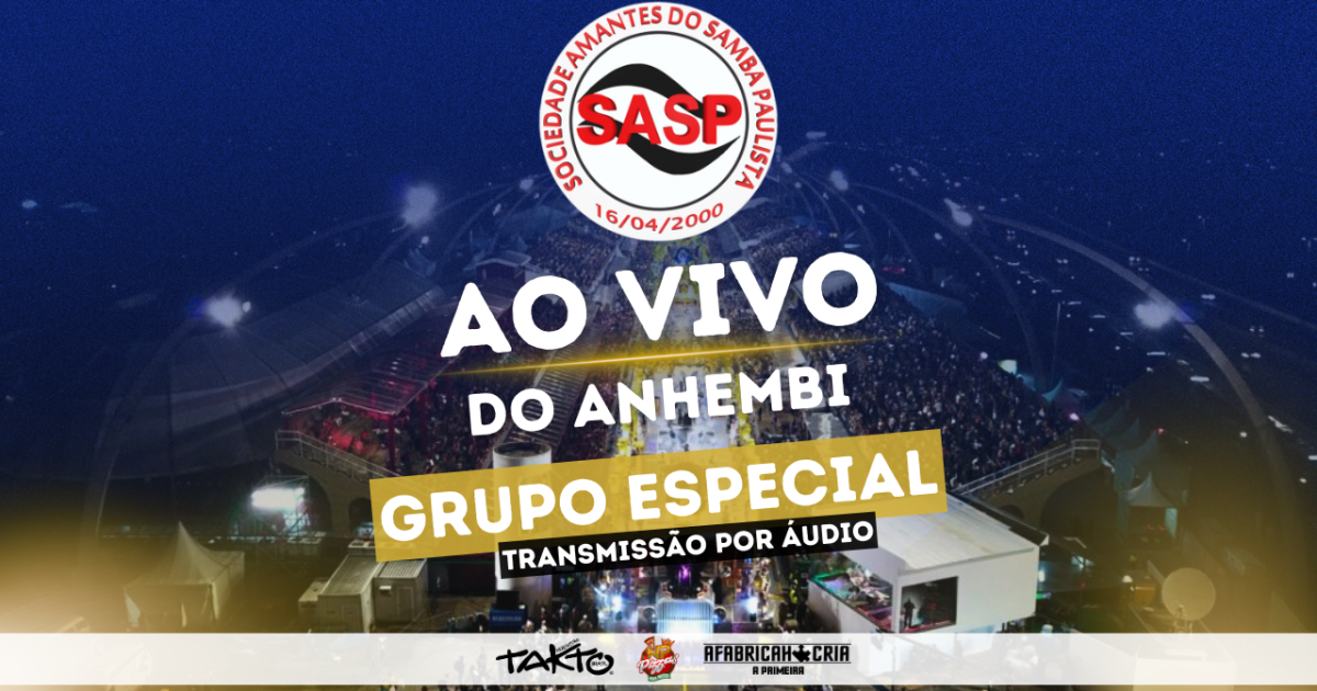 Enfim, é Carnaval! E a SASP está pronta para levar até você toda a emoção da festa que os sambistas esperam o ano inteiro. Como já é tradição desde 2013, a Sociedade Amantes do Samba Paulista realiza a transmissão em áudio, ao vivo, dos desfiles das escolas de samba dos grupos Especial e Acesso 1 diretamente do Sambódromo do Anhembi.